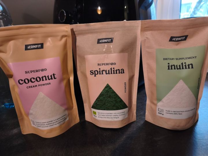 Detsembris otsustasin, et kuna mul pidavalt jääb kiudainete kogus alla normi ,siis ostan mõned pakikesed. Aga et tellimiseks läks, siis võtsin muudki lisaks. Kas keegi on proovinud spirulinat? Olin ammu kuulnud, et see on üks ääretult kasulik pulber, nüüd jäi silma ja tellisingi. Ma olen küll nõus oma tervise nimel paljutki tegema, aga seda jälkust suutsin alla neelata vast 5-6 korda, siis viskasin kotikese minema. Juba hais on vastik, maitsest rääkimata. Lõhn meenutab muide akvaariumikalade sööta.